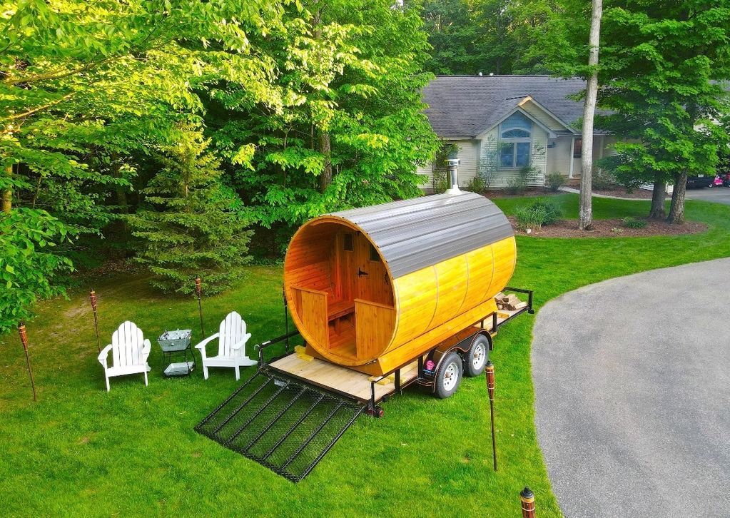 Handcrafted in the Upper Peninsula of Michigan, Begin Adventures offers both a 4 person and a 6 person wood burning Barrel Sauna for rent! We will deliver the sauna, set it up for you, and instruct you on how to fire it up for an amazing Finnish Sauna experience right here in Northern Michigan!