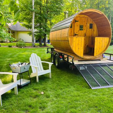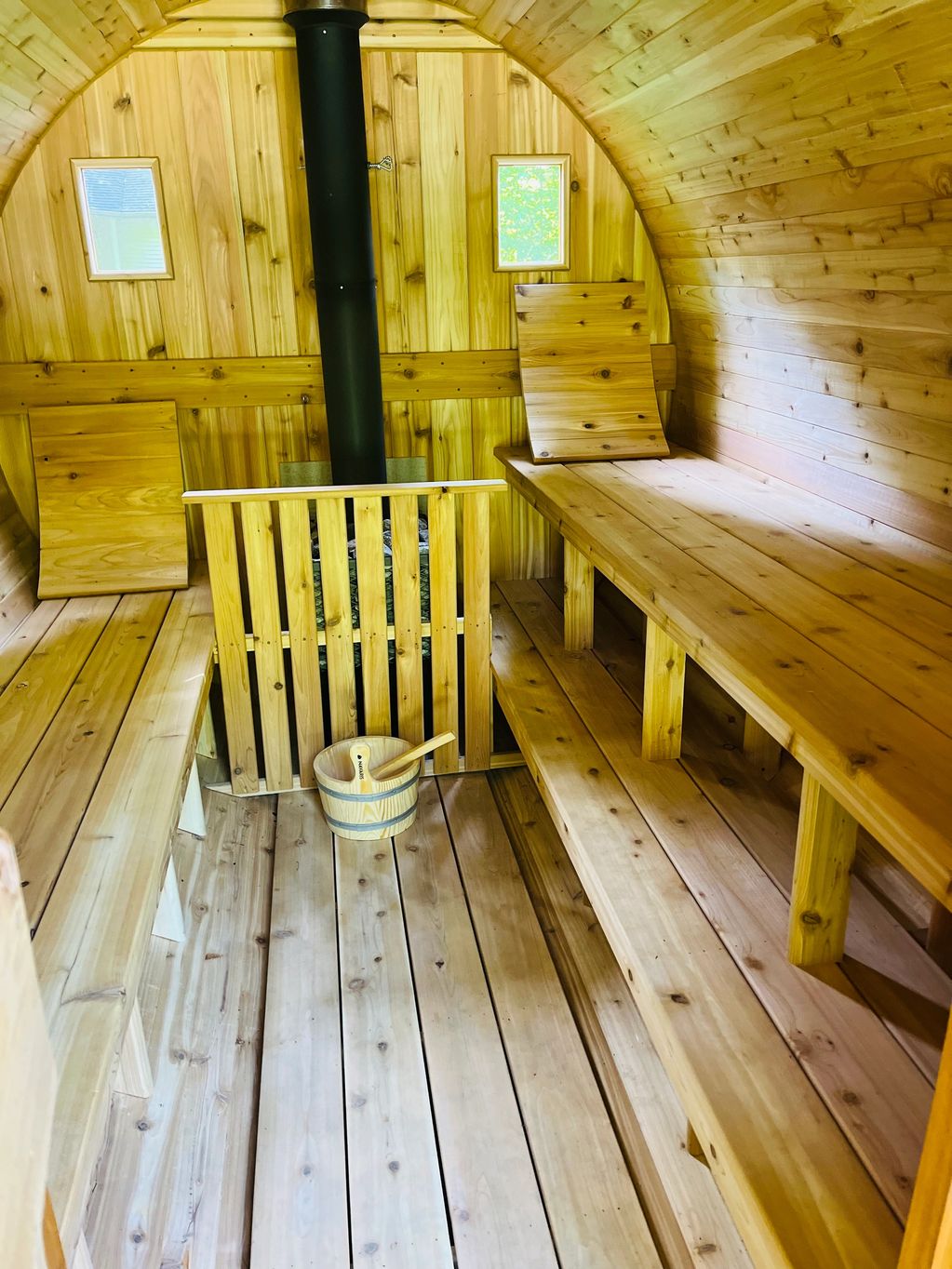 Experience the amazing benefits saunas have to offer both physically and mentally in either our 4 or 6 person wood burning Cedar Barrel Saunas! We will deliver to the comfort of your backyard, within 50 miles of Traverse City. Two day minimum required. Call us to book!